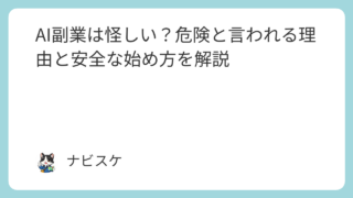 AI副業の基礎 AI副業は怪しい?危険と言われる理由と安全な始め方を解説 AI副業は怪しい?そう言われる理由と、本当に危険なケース・安全な始め方を初心者向けに解説。失敗しないAI副業の選び方がわかります。 2026.01.31 AI副業の基礎よくある質問